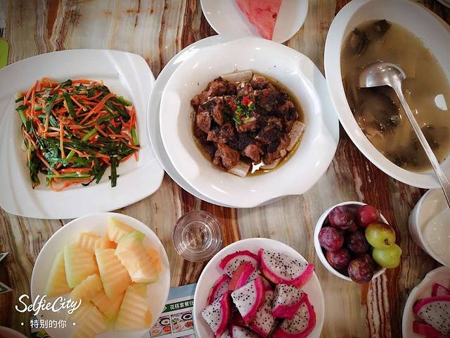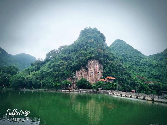 全程不走回头路,到龙潭摩崖石刻附近的正门,游了1个半小时左右。就在公园大门口坐的19路(2元),到鱼峰山站步行到酒店13分钟左右,到酒店办入住后。去酒店旁边椿记烧鹅吃午市特惠套餐,只要29元一荤一素加一汤,每人3元的自助水果吃到撑,在桂林玩的时候就特别喜欢吃椿记。