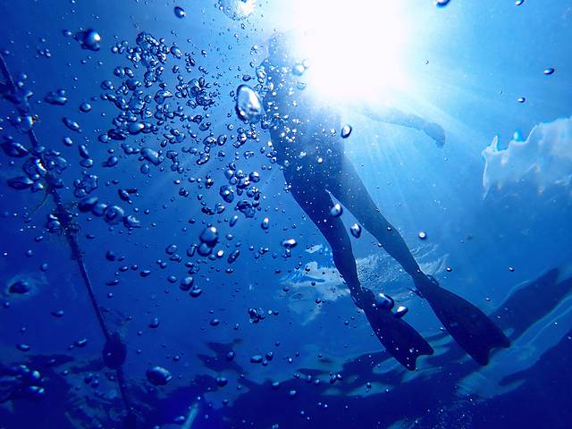 另外一点也很重要的就是不怕水。坐船出海潜水时,由于空间的限制,几乎都是背着气瓶后翻入水。潜到水下十几米后,早已经不是浅水明亮的环境,伴随着自己的呼吸,四周是深蓝的海水,当潜水到达一定深度时(特别是11米以下),因为水压的关系,即使发生任何情况也不能因为害怕而慌忙快速上浮,会造成严重的肺部损伤。