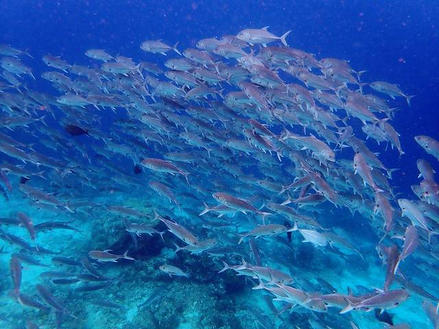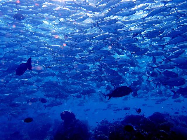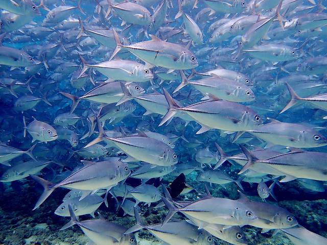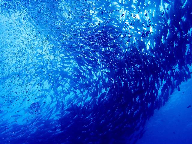 2018年是我和猴胖领证五周年,现在已经不记得我无意间在哪看到过的一张鱼群风暴的照片,当时瞬间就被这样的场景震撼了。照片上一个只有剪影轮廓的潜水员直立站在深蓝的海水中,不远处是庞大的围成圆柱形的鱼群。后来,看到介绍说这种鱼群叫杰克风暴,位于 马来西亚 仙本那 的 诗巴丹 。我开始时不时的搜索关于潜水的资料,然后胡乱跟猴胖说:“你不是喜欢大海吗?我们去考个证吧,拿到证以后就可以去全世界的水下看看了,像马代那样美的海底还记得吗?”。猴胖稀里糊涂的答应了,那会儿的他连我们要去哪都不知道,更别说要学些什么了。