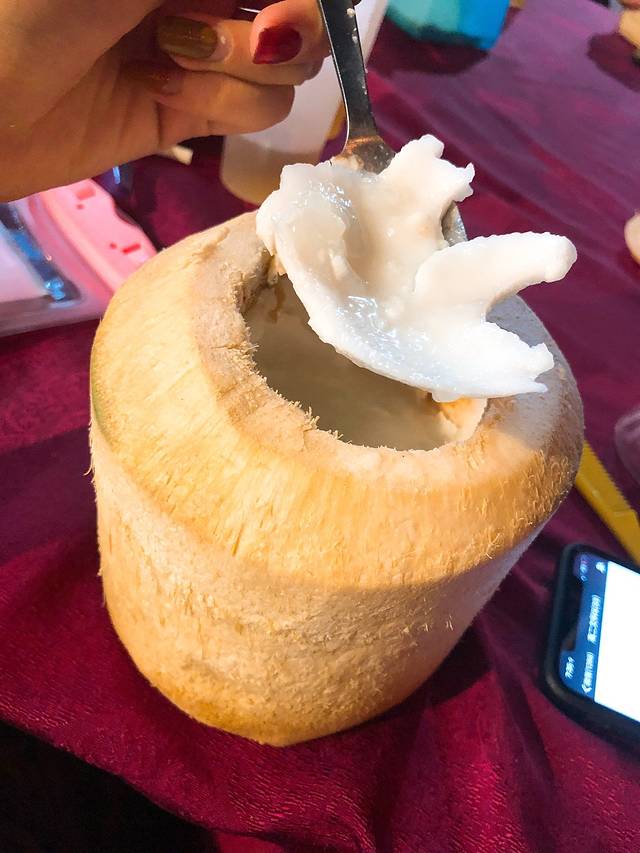1. 冰镇椰子水、芒果汁:从太平洋酒店往中间码头走的卖水果那几个摊位上,有透明大桶装着满满冰块的椰子汁和芒果汁。推荐第一家老板娘是个马来女人的那个摊子,亲测比其他几家的味道都浓郁,并且只卖1马币1杯。每天我和猴胖经过那都必须椰子、芒果各一杯,大热的天气下,喝着浓郁椰子和芒果的冰镇饮料真的很爽。有时候去晚了椰子汁就变成里面放木瓜或者西瓜的饮料了,那种的没有漂着白色椰肉条的好喝,所以可以每天4点下船回来就去买2杯,亲测好像越早买味道越浓哦。