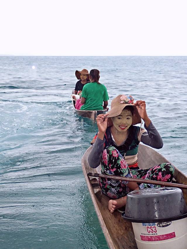 我们的船刚停下不到30秒,不知道从哪里突然传来一声叫唤,船的左右两侧海里一下子窜出了几乎10个巴瑶族小孩,还没等我们反应过来,他们已经左右夹击的从我们人和人之间的缝隙冒了出来,有几个直接上了船。他们一边念叨着什么一边把手伸向我们,船上的其他人都惊到了,船长解释说:“如果你们有糖果之类的,可以给他们一点。”很显然船上的其他人没有做攻略开始茫然的掏兜,而我因为之前那个小女孩的行为,去超市时放弃了购买糖果。大家你看看我,我看看你,谁都没有带能给出来的小东西。这些小家伙要了一会儿,看我们给不出什么东西,而且大家已经停止了翻兜,马上就生气了,几个人跳到船头的中间借着海水的波浪开始左右左右的往下压船,没几下功夫,我们的船开始很大幅度的左右摆动,吓得船上的2个女生惊叫连连,生怕一不小心船就翻了过去。船长拿了两包给我们准备的饼干递给他们时说了几句话,几个小孩转身下船撤退了。我们曾经在图片中看到的巴瑶族小孩,都是透露着无杂质的纯净眼神,对大海生活无限满足,对外界既无知也无欲无求的状态,至少在我的预设场景里他们绝对不是以小海盗的形象出现的。我不知道是因为游客的到来给他们的生活带进了世俗吗?如果这个地方没有被大肆宣传,没有 亚洲 小 马尔代夫 的赞誉,没有一批批游客的到此一看,是不是他们的世界还会纯净如天堂,虽然贫穷,但没有任何的自卑和羞怯,活的自由随性。
