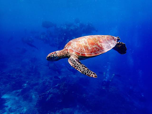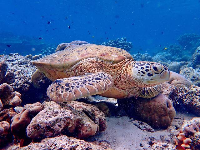 看,海龟的身下还藏着条鱼
