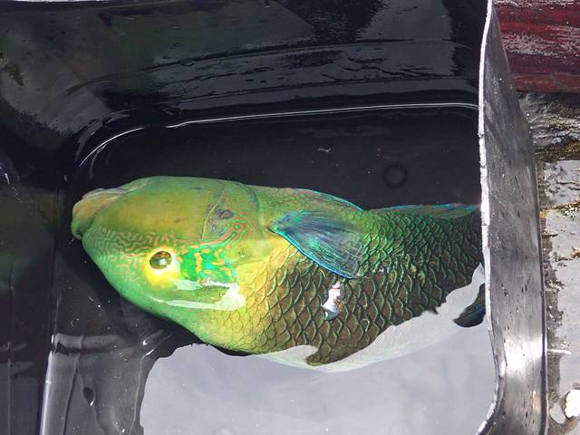 (一个人在海上卖刚打捞上来的拿破仑鱼)