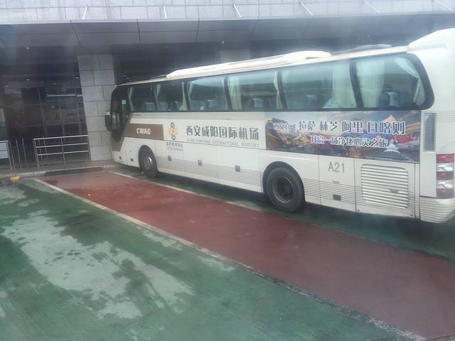 一个多小时后平稳地降落在咸阳机场,出站口外边有机场大巴自助售票机,也有机场工作人员在旁边指导,很方便。
