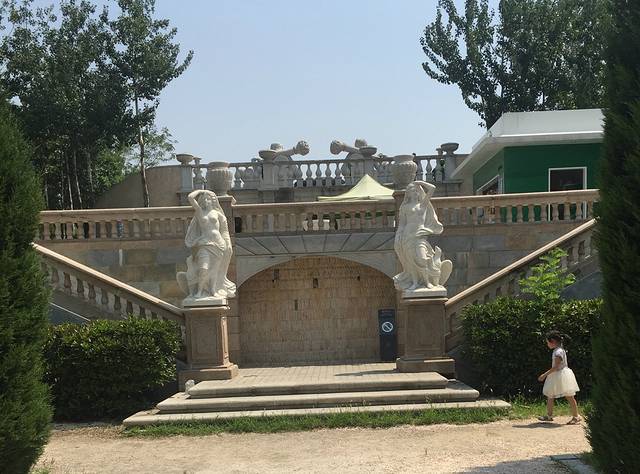 一直往里走,到观光车售票处都没什么人。旁边有一辆小火车,但一个人都没,我买了5张票,(1.2以上儿童要购票),车票观光车和小火车都可以坐,每站要在票上打一个洞,一共8个站,但我们全程没看到小火车,估计人少的缘故,第一站和第二站之间要步行过一座桥,车过不去,桥那边的站有观光车在等乘客,穿过桥依旧没什么人,园子里有的地方正在修建,景点和绿植也没什么特色,好多树的树干已经被虫子吃的全是洞孔,病入膏肓,没人维护,一点都不如天津的绿博园,来到这里丝毫没有感受到世界的气息,失望得很,感觉大老远白跑,以后大概不会再来了,草草的坐着车观光了一圈,最后一站就是那个世界特色的小岛,特意下车去看了看,还是失望,面积不是很大,简单的几尊西方石像及雕塑,中间没有衔接,比较突兀,真的没心情看了,出门原路返回车站,回到酒店已经两点,这好好的一上午感觉太浪费!