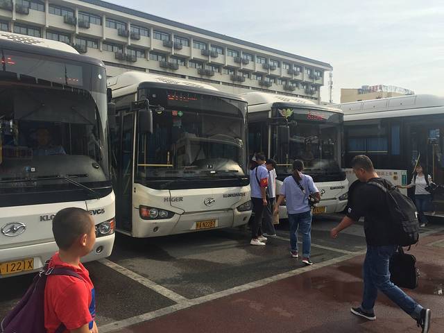 有了头一天的教训,早上七点就起了床,老人已经吃好并带回早点,吃过后带好充足的水我们去火车站广场找游5公交车(306路)(水一定要多带,景点的水售价都很贵,一瓶超市一元的水要售到四五元钱,关键有些景点水都不卖!)路上不停地有黑司机,黑导游推荐景点,价格很低,但不要犹豫,快步走开。火车站附近有很多黑色制服的武警在大伞下值班,可以找他们问路,一般都会很详尽的告诉你怎么走,临走还会叮嘱不要相信黑导游,注意安全,感觉很贴心!赞一下!!到了车站广场远远地就看到很长的一排队伍,我猜应该是306路,走近一看旁边立着306路的牌子,我又确定的问了一下旁边排长队的游客,都说是306,那肯定不会错了,于是开始排队,可能出来比较早,速度比较快就到了车前,放眼一看,前边一排306,丝毫不用担心没车坐,身穿浅蓝色上衣黑色裤子的工作人员数着人数上车,一人一座,人满就走,比较快且有秩序,其他帖子上说904路也是正规公交车,目测了一下,没找到,广场上有些穿工作服的人员也是假的,有一个就告诉我妈妈让往另外一个方向走,所以车站更要加倍小心!公交车全程不上高速所以慢一点,好像两个多小时到达景点公交站,先经过华清宫站,后到兵马俑站,游5末班车是6:30的,一般兵马俑这一站满员华清宫就不停了,所以当日回来的童鞋一定要看好时间,游玩应该先去华清宫,后到兵马俑,最后从兵马俑上返程公交车,我们因为定了晚上8:10分长恨歌的表演,所以提前在去哪网网上加购了华清宫停车场返程的大巴车票(30元/位,儿童也收,虽然觉得贵一点,但省心,看完表演出门几百米就可以上车)。