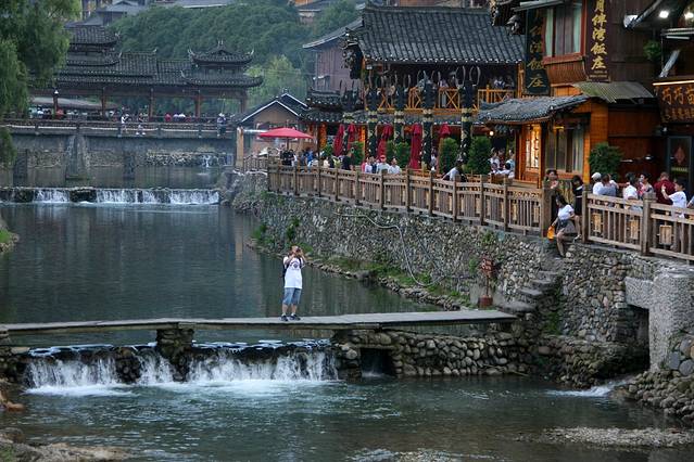 两旁房子中间有条小河,其实跟湘西凤凰非常的相像。