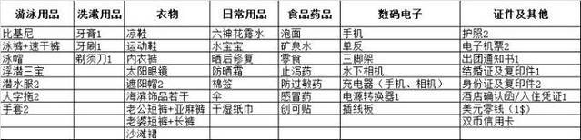 附上我的旅游清单,仅供大家参考