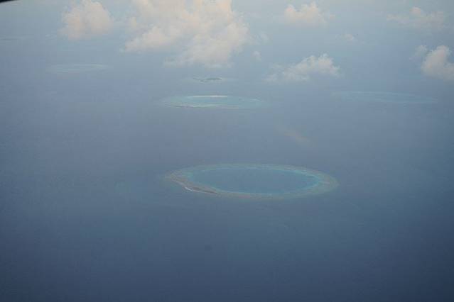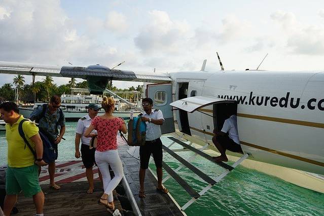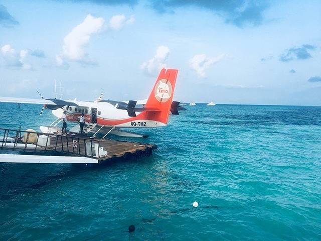 若是早上上岛建议水飞飞机坐左边,下午右边,回 马累 相反,这样没有太阳直射 马尔代夫 海上美景尽收眼底~飞机行程约40分钟左右,在水飞停落点稍作停留后快艇上岛~