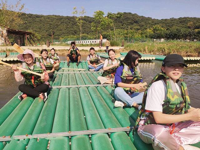竹筏水上漂:中秋团圆了一家人乘坐一条竹筏,荡漾在青山绿水之中,享受微风,享受阳光,享受中秋团聚的美好,几支船桨慢慢的滑动着,一家人笑呵呵的相处着,中秋节慢下来陪陪她!