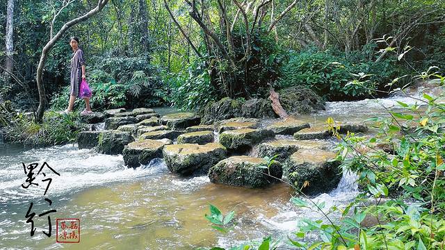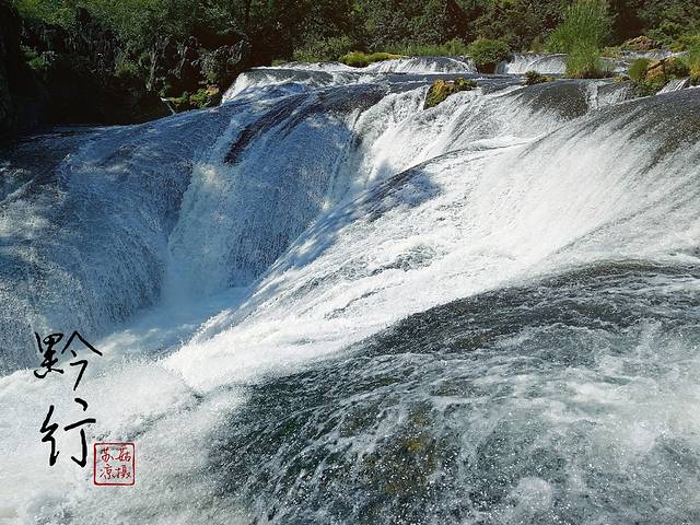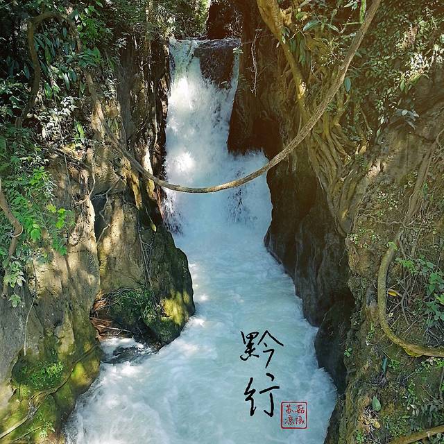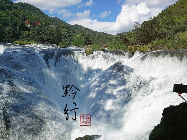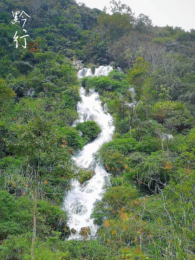 过小七孔桥,曲行百米许,即见拉雅瀑布。