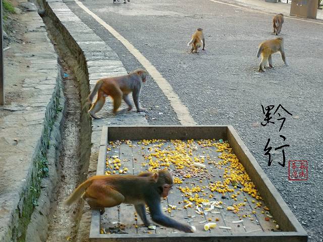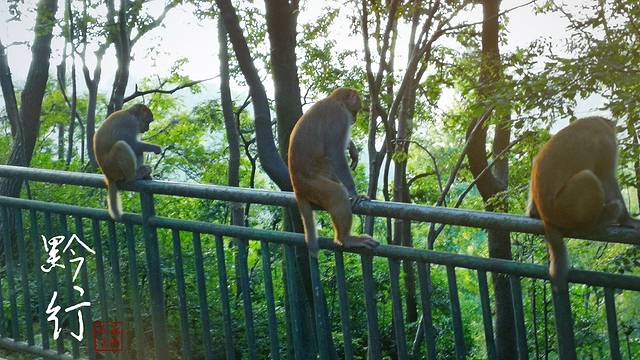原以为无缘看到黔灵山的猴子却恰巧赶上喂养员喂食看到了成群的猴子