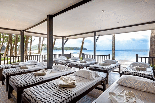 都说天然的才是最好的,所以,我们这次来体验的这个Spa Massage(温泉SPA)是酒店自带按摩馆。该Spa Massage户外半开放性质,坐落在私人海滩,可以边吹海风边按摩!海风吹起幔帐摇曳,还享受着捶腿捏背的服务,真是宛若女王~这种景象不仅有一股子浪漫的味道,而且真的是超级无敌爽!