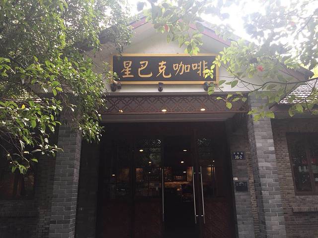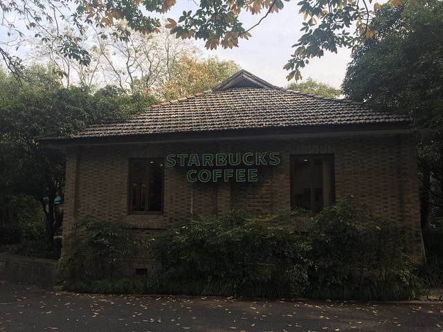 公交车下车是停车场那边,走过来,看见一个很复古的星巴克,就进去做了会,我点了一杯万年不变的馥芮白,老公点了抹茶星冰乐。