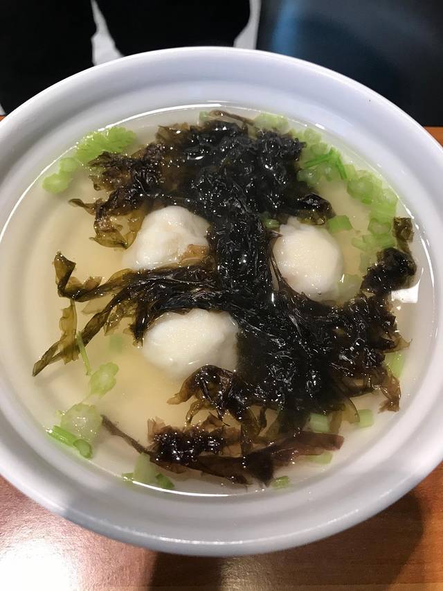鱼丸,很清淡,一碗只有3个,绿色的不是小葱,是芹菜,清口。