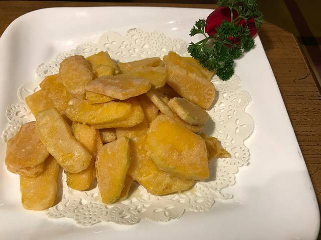 蛋黄焗南瓜,居然是有点咸咸的,我们以为是那种甜的,