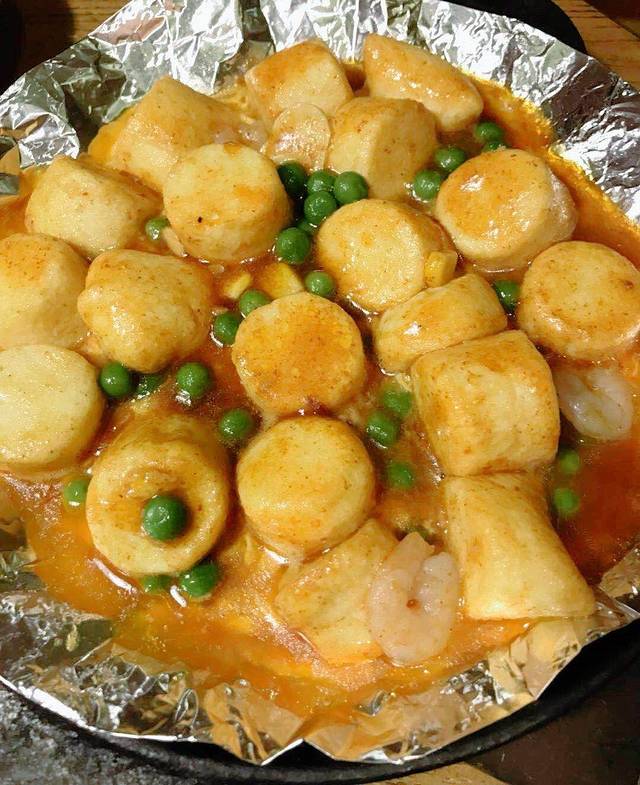 铁板豆腐,这个很好吃,是日本豆腐嫩嫩的,里头还有虾仁。