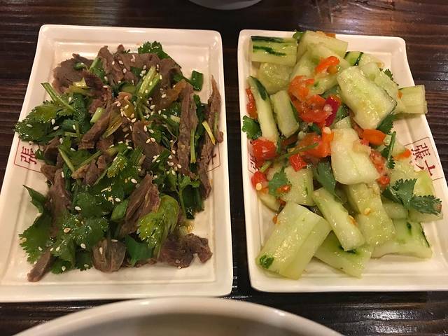 还有一份凉拌羊肉和黄瓜,可以我们重口味吧,这2个也感觉很清淡,