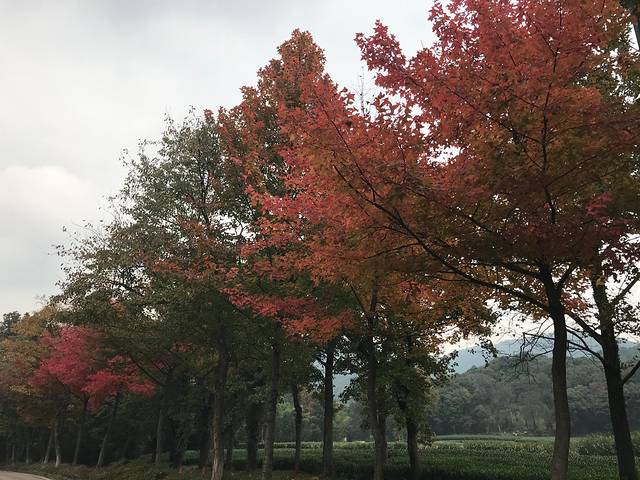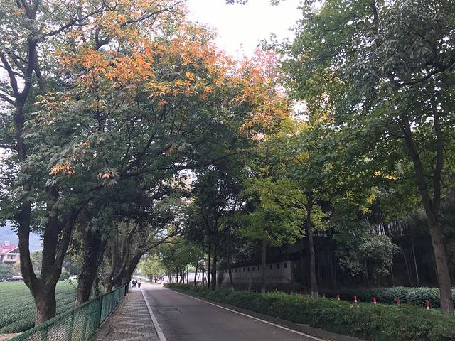 下车的那一站,车站名字就叫做云栖竹径。结果公交车下车之后就是下面的景色,我们俩一下车就不自觉的“哇”,太美了这里,没想到意外来到了龙井茶基地,我们干脆就在着马路往前走,欣赏这里的美景,呼吸这里新鲜的空气,看看两侧红红绿绿的树木,看看两侧静怡的茶园。