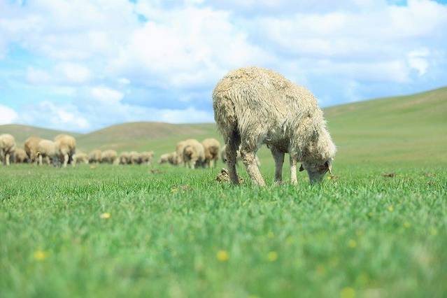 辽阔的草原,过路的羊群,