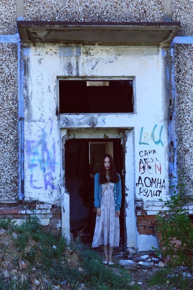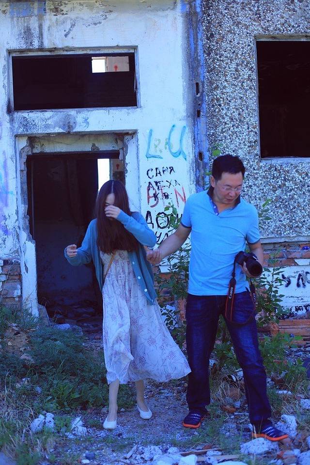 一大早驱车前往啊列湖,路过一栋废弃的烂楼,斑驳的墙壁像是经历过一场大火,凌乱的黑色涂鸦,门前土坡长满了杂草,看上去贼恐怖。小邓说,走,我们去拍鬼片