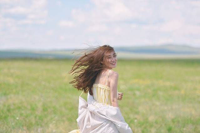 风吹得头发很好看。
