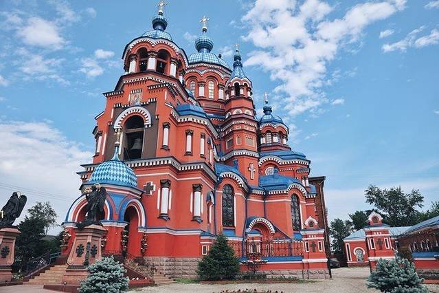 坐落在卡尔•马克思大街 喀山 圣母教堂,唯一一座允许拍照的东正教教堂,具有典型的拜占庭式风格,浑厚的红色外墙,蓝色洋葱头般的穹顶,如童话城堡般鲜艳夺目