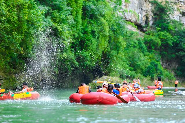 有过对比,才觉得仙女峡漂流的水质有多优秀。在漂流中可以尽情感受河床曲折回旋之气势、浪遏飞舟的爽快,经历一场惊险刺激、清凉畅快的湿身旅程。