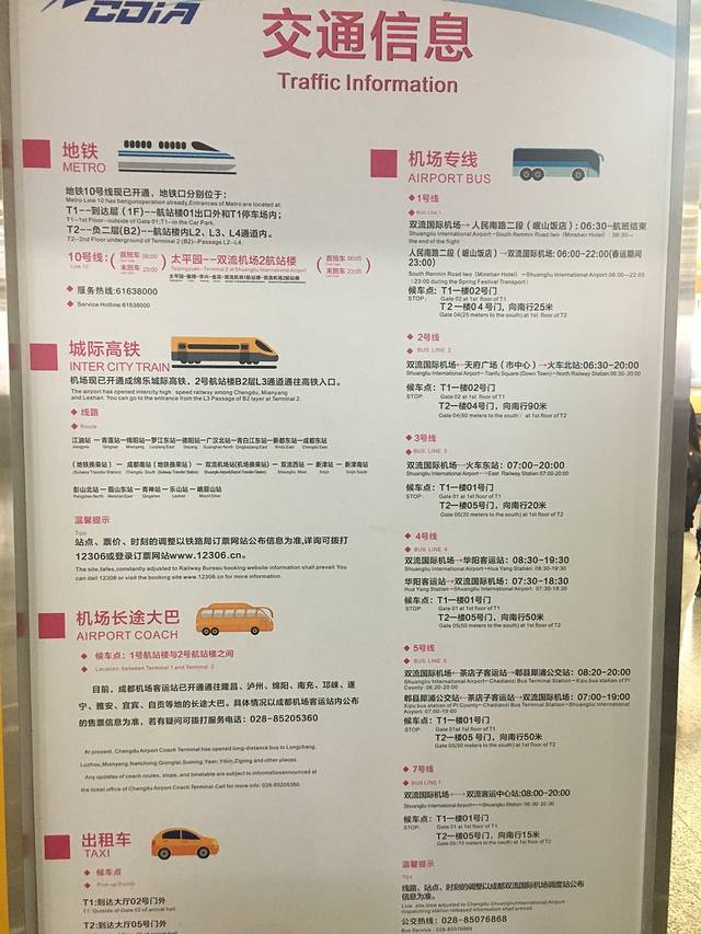 到了成都双流机场,交通信息都贴在很显眼的位置。😌