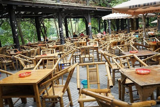 早晨8点左右还没有多少茶客,三三两两坐在河边的位置,喝茶采耳看报,微风细雨,慢享生活。