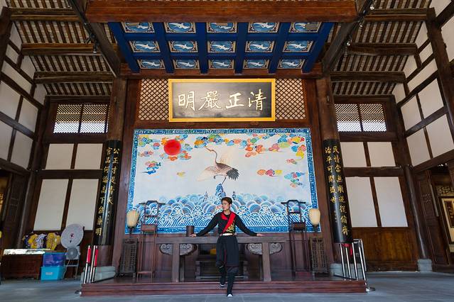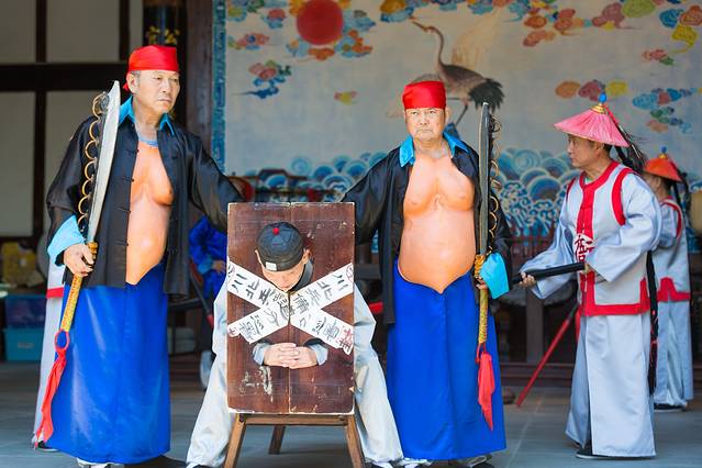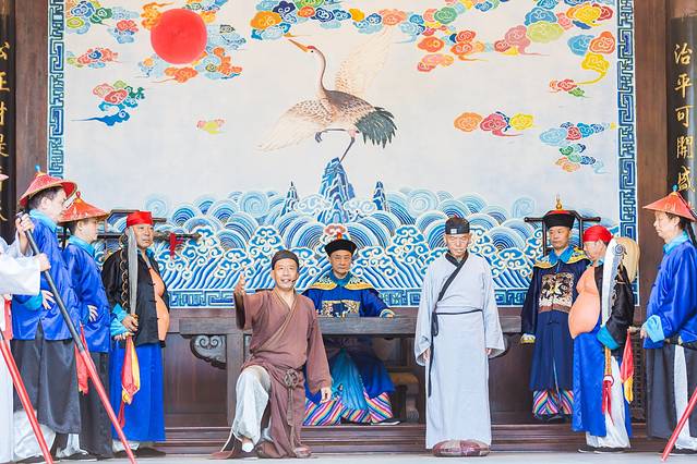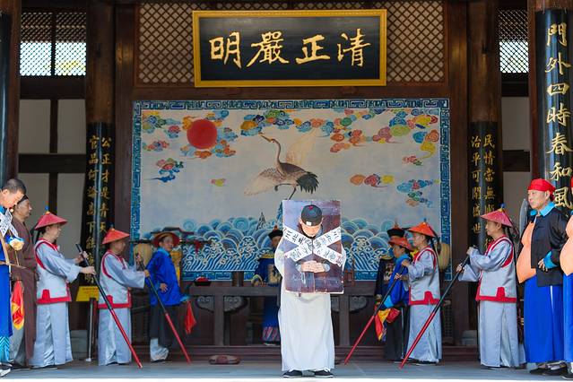 当然,这里最有趣的便是观看审案,从犯人押解到场,到审判,到宣读罪状,一步步下来,对于古代的审案过程有了一个大概的了解。