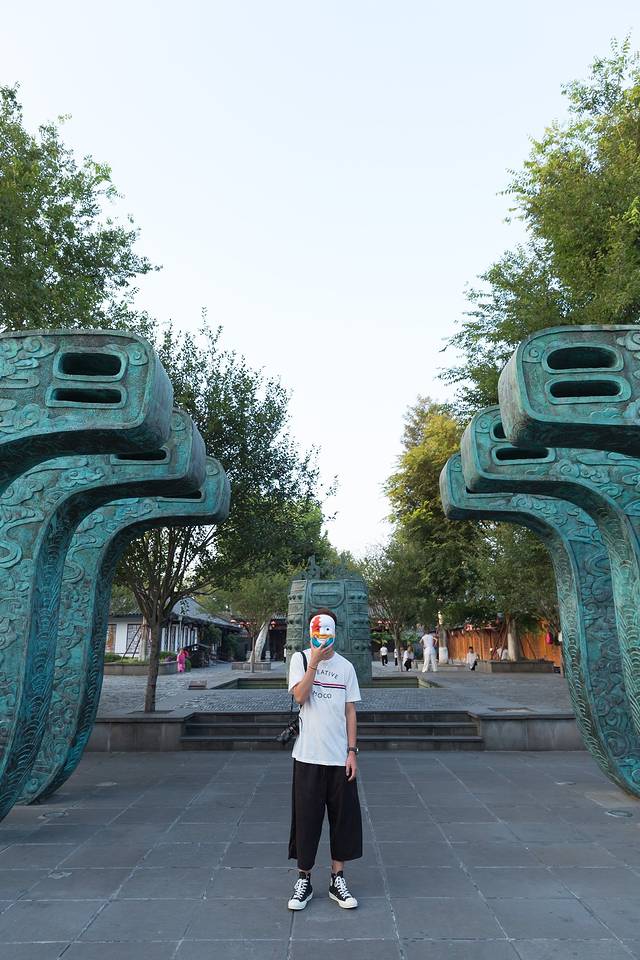 第一站:贡院外广场,体验内容:打卡 阆中 青铜雕塑的「阆」字。