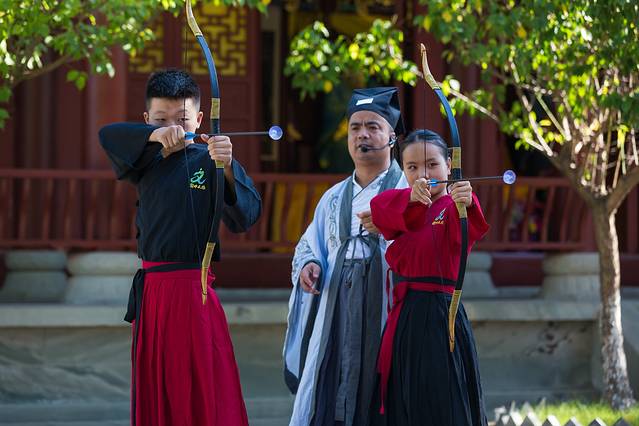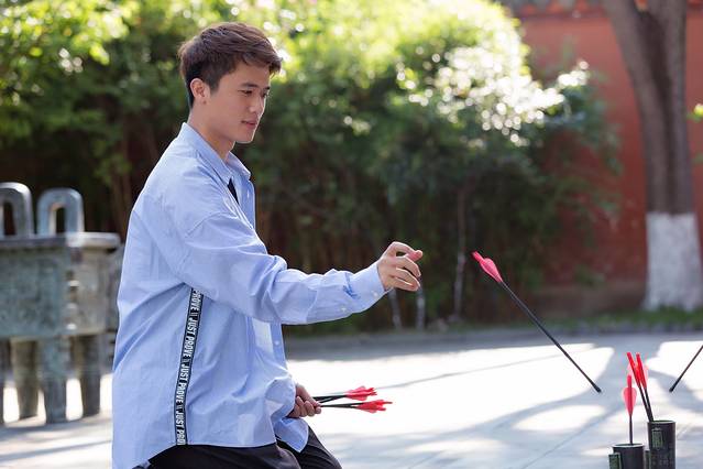 在历史上的有些阶段,科举并不仅仅考文学,对于六艺中的射、御也会有相应的考核。在贡院同样能够体验射箭和投壶,所以当我拉开弓箭的时候,仿佛自己置身校场之中,周边虽然是此起彼伏的呐喊助威之声,我的眼前却也只有那一环一环的箭靶。