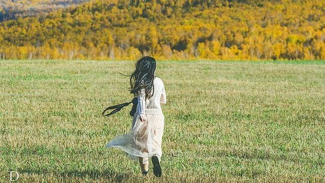 背影人像在户外摄影中很常用,背杀总是充满神秘感,百看不厌。但是背杀照,直直的站着,则显得比较死板,所以拍摄的时候,请搭配上一些小心机,比如,扶帽子、捋头发、奔跑……