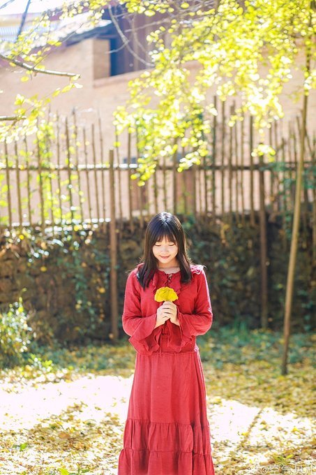金黄的银杏、火红的枫叶、红彤彤的柿子……随手拿起,都能派上用场,这样拍既生动,又显得人物活泼可爱~