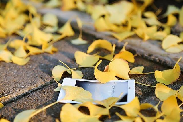 3.你还可以拍摄落叶满地的银杏街道。借着斜洒的光线,让金黄充满整个画面,营造出一个温暖的秋日之境。