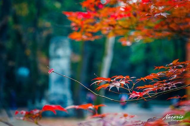 发现好看的枫叶亦或是有特色的树干,都可以利用浅景深的拍摄方法,来避免照片内容杂乱无章,而要让人一眼看到内容的主角。