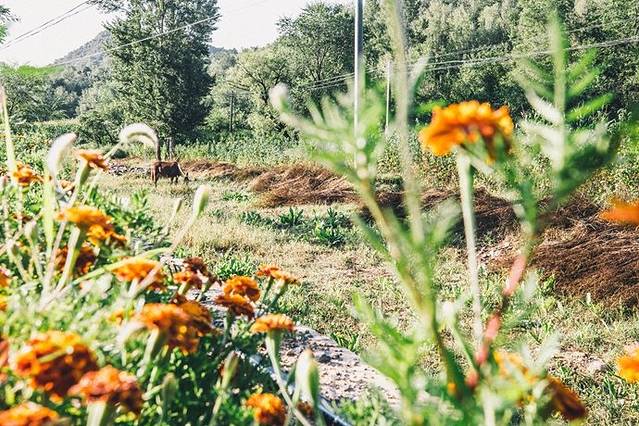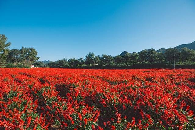 沿着延琉路、周四沟路,再开10分钟到下虎叫村,就到了这次小旅程的目的地,也是网上种草很久约了好几次才约上的网红民宿——山楂小院。村口的七彩农园,算是四季花海一部分,也种满了各式各样的小花!