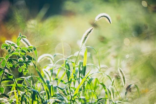 路边花草上一夜的露水,还没来得及全数抖落,近处泥土、花香、微风、蝴蝶,远处驴子悠悠闲闲的吃着青草。
