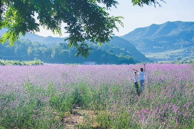 蓝紫色系的马鞭草,细长柔韧的茎随着秋风摇曳,纤细柔软到让人生怜。
