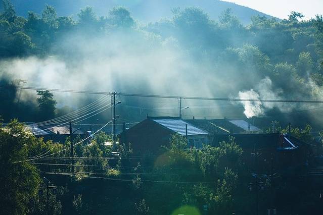 村子里也家家升起炊烟,开始了新的一天。城市里已经消失了的电线,猛然在村子里看见,却原来一条一条横横竖竖,竟然多出了几分诗意。