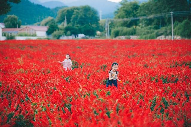北方的9月初秋,是一年四季里最棒的时候,没有初春的光秃秃、冬天的雾霾,也不再怕夏天的暴雨。爽朗的蓝天白云,遇上最灿烂的鲜花万里,世界上最美的颜色都凑到了一起,该是多么完美!当然,最最少不了的,是花丛里奔跑着的你…