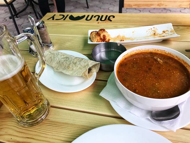 汤碗牛肉+kabab+牛肉肉馅卷+鲜啤