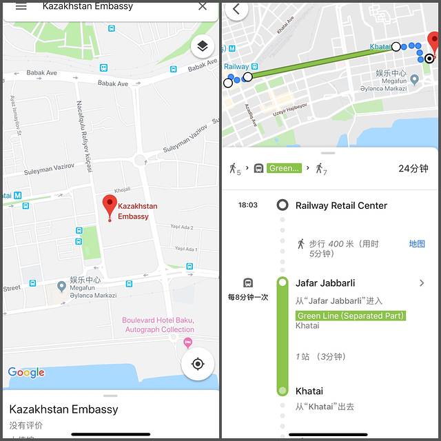 可以乘坐地铁到此处,我们是从巴库火车站出发,具体地址和路线如图: