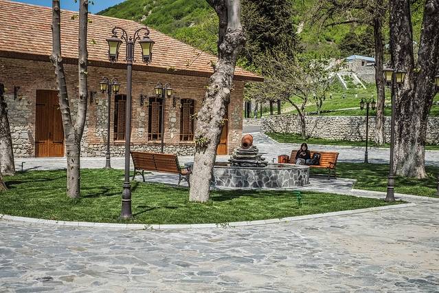 我们到达时,有许多阿塞拜疆的美女穿着特色民族服饰在酒店庭院内拍写真,也算一个小景点~