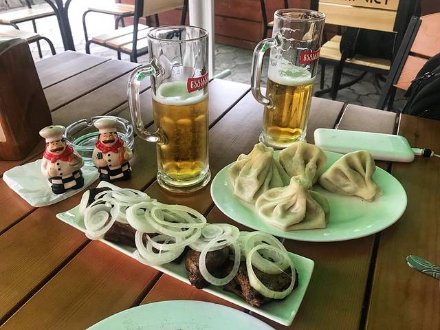 格鲁吉亚传统饺子Khinkali+烤鸡块kabab+鲜啤