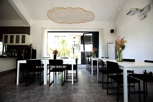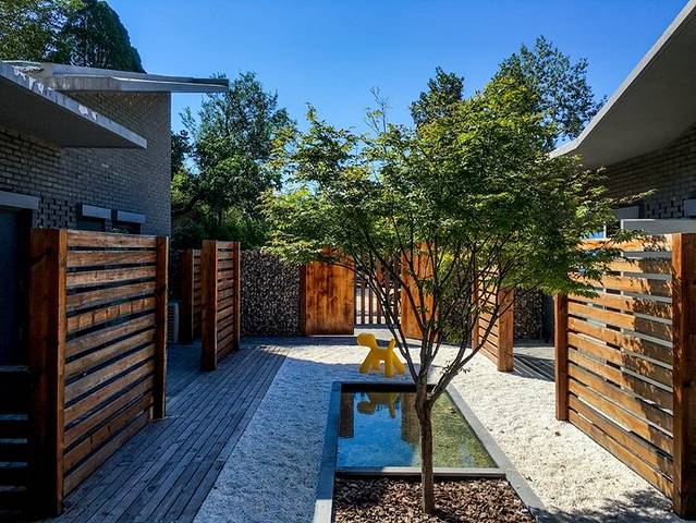 与隐居乡里旗下的其他独立小院的民宿不同,丫头的客厅是一整个大院子,有九间不同主题的客房,中间用一个开放式的餐厅+厨房,将大院子又分成了前院和后院两部分,前院有四间客房,后院有五间客房。
