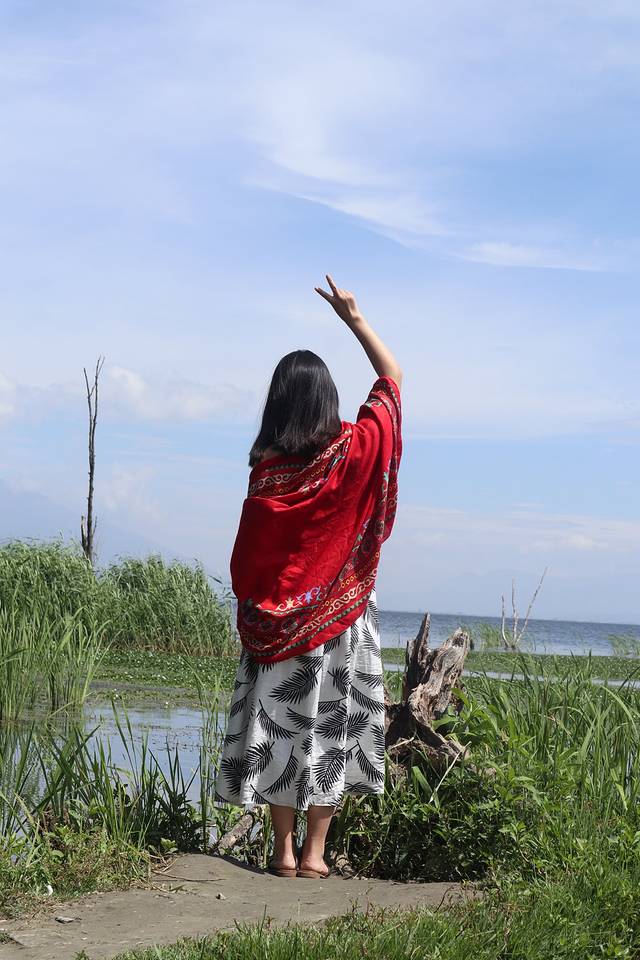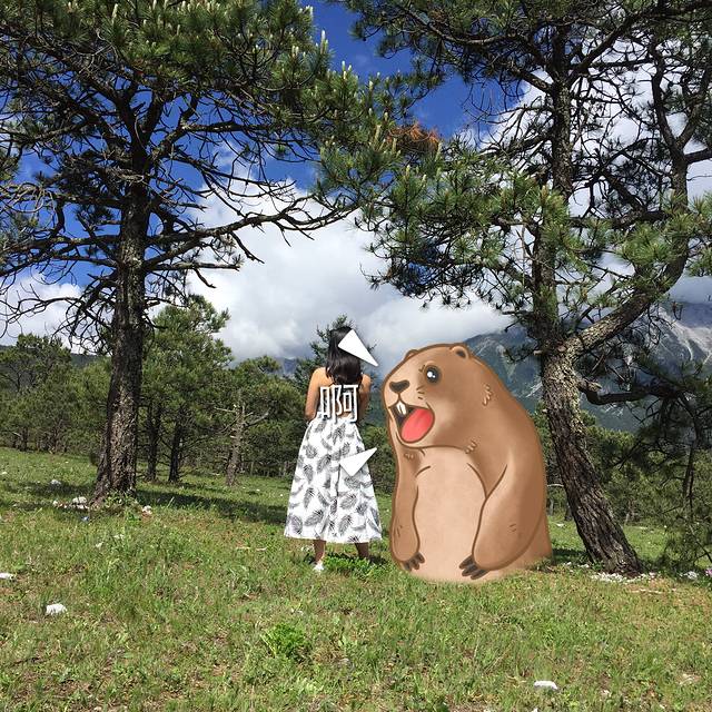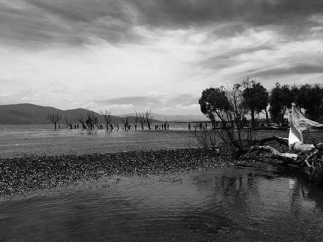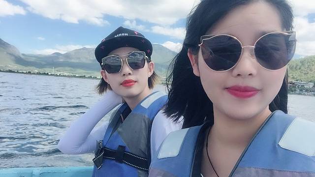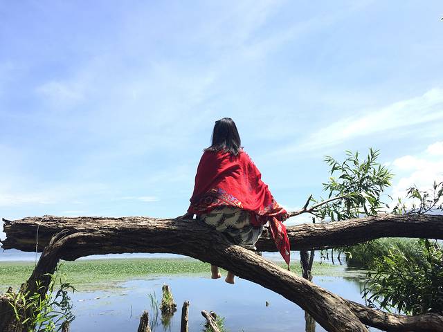不想划船的也可以在岸边休息,也是不错的,也有道具拍照(和洱海边的一样),需要排队,排队的人超级多。