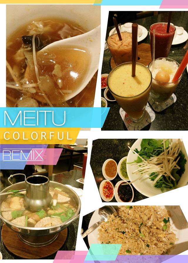 海鲜酸辣汤:★☆☆☆☆推荐。150铢,考虑到泰国满大街的东阴功,这家有酸辣汤,姑且试一下。一试悔得我肠子都青了,个人认为自己还算能吃辣,和老家四川的同事去吃饭也是可以和她PK 一下的。这个汤怎么说呢,我是喝一勺辣汤必须再来一口芒果冰沙,不过后来我用这辣汤拌菠萝饭,倒是中和了辣度,而且复合口感的酸辣菠萝饭到也挺好吃,太佩服我自己啦。