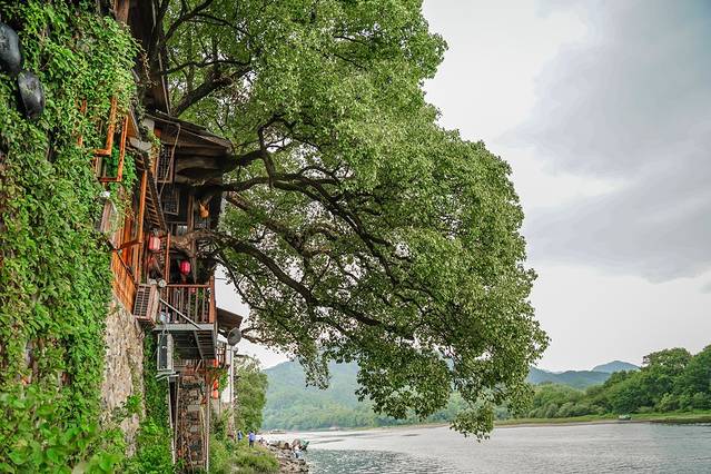 江边有一条古道,繁茂的 樟树 从木楼的间歇探出头来,远处那家挂着葫芦的客栈就是我们的住所,葫芦里装着桃花酒,还有迎客的红灯笼,我迫不及待的想住进去,靠在那个窗口,吹着江风,饮一口酒,催烦心事溜走,徒留自在于心头。